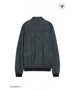 ÁO KHOÁC DA GHI XÁM CỔ BẺ CHE KHUY CÚC BẤM TAY BO RÊU